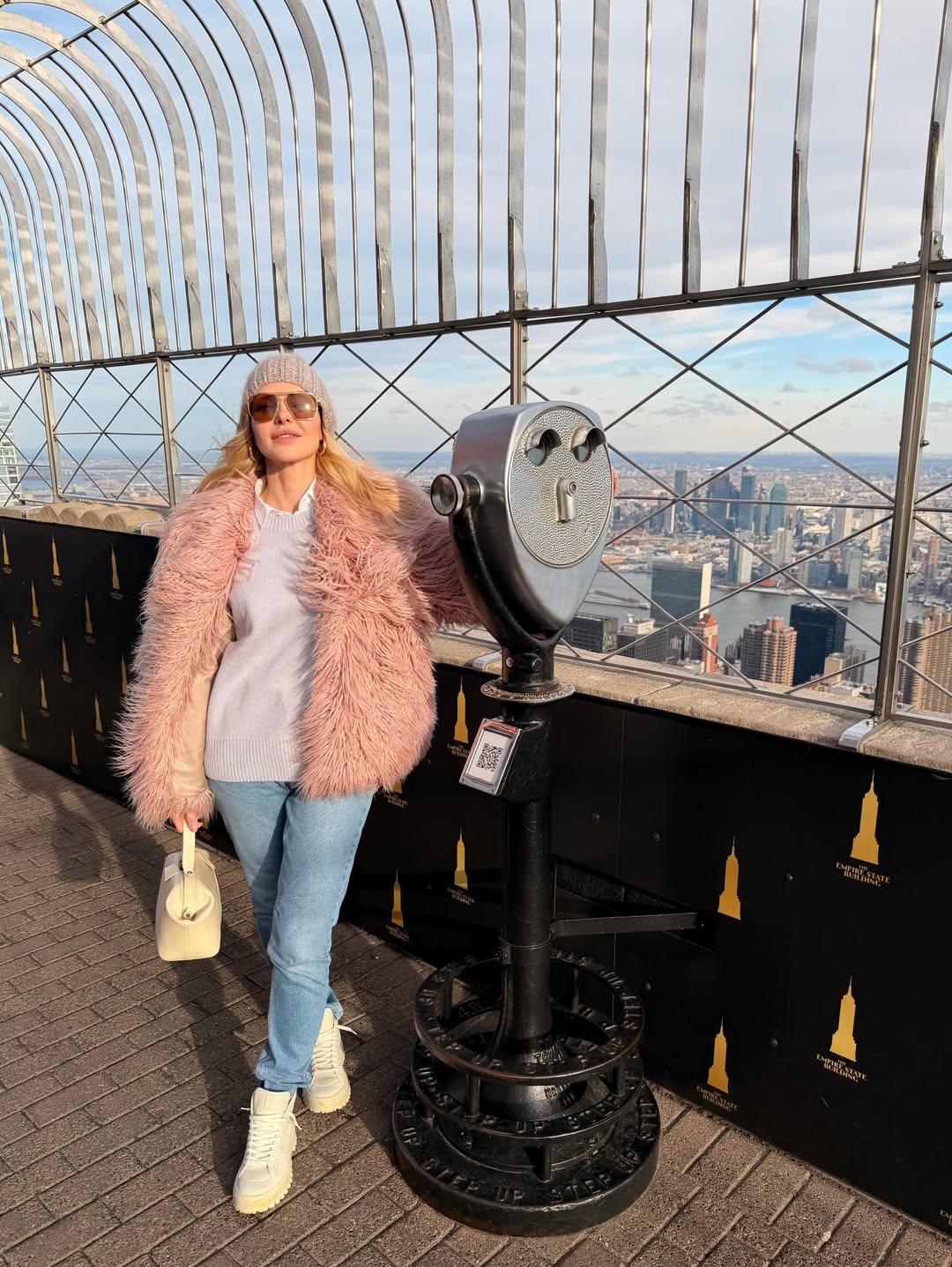 Вона вміло поєднала комфорт - теплий верх, зручне взуття, багатошаровість - з високою модою. Результат - образ, який підходить для подорожей, прогулянок і фотографій: яскраво, сміливо та дуже стильно.